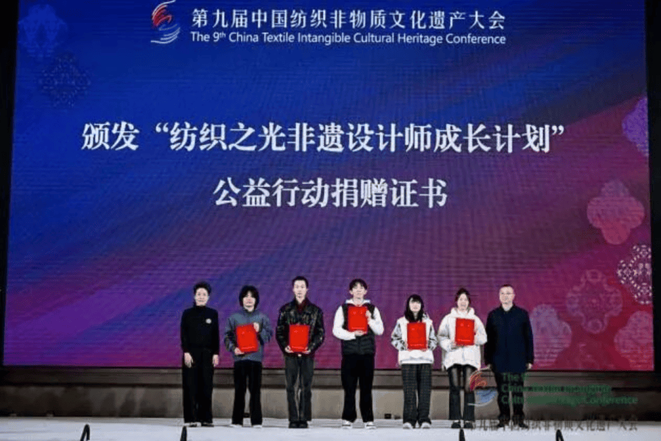 启动仪式上,还颁发了“纺织之光非遗设计师成长计划”公益行动捐赠证书,不仅是对无私奉献者的崇高致敬,更是对全社会形成“关注非遗、支持创新”良好风尚的积极引导与荣誉见证,让传承之路因更多人的点亮而愈发宽广。