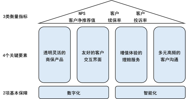 服务飞轮运转成效可通过“两高一低”指标体系衡量:NPS客户净推荐值高、客户续保率高、客户投诉率低。